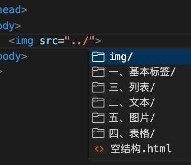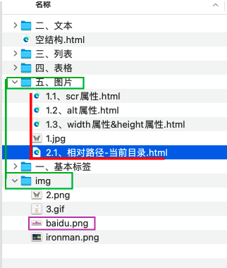 - 现在我把img文件夹,放到了五、图片同一级目录,而我的照片是在五、图片下的,如何操作才能选中外面的baidu.png这张图片?