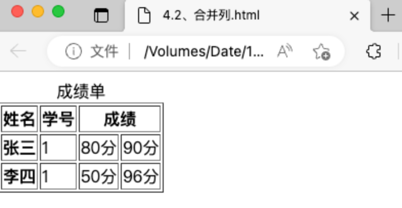 </html>4.2合并列:colspan