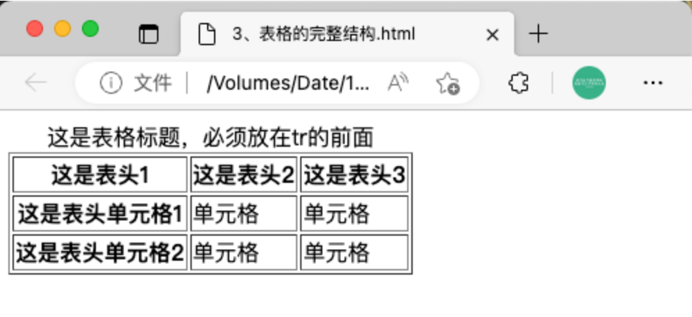 </html>3、表格的完整结构