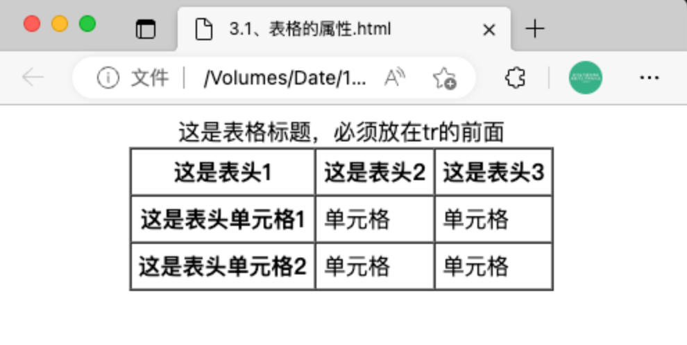 <caption>这是表格标题,必须放在tr的前面</caption>