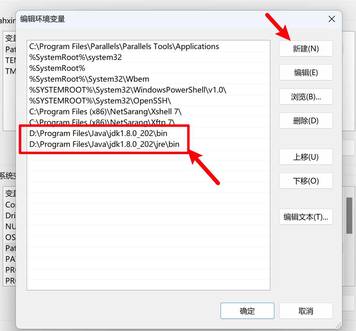 D:\Program Files\Java\jdk1.8.0_202\jre\bin回到环境变量新建添加: